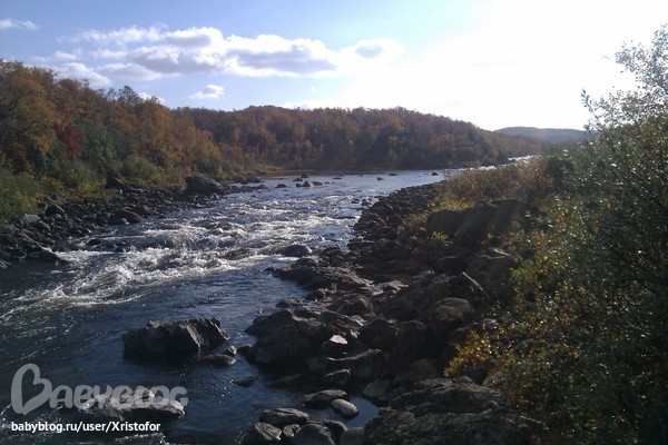 Осенью по этой реке семга идет на нерест против течения. Сама видела, как запрыгивает в пороги...