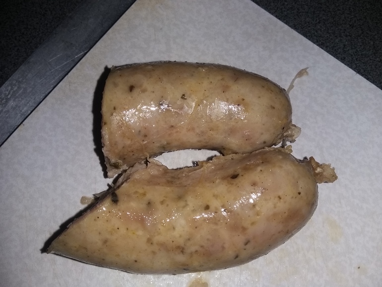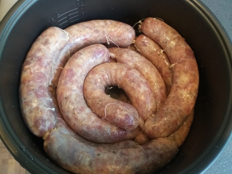 Опыт с сосисками, сардельками и итальянскими колбасками понравился всей семье. Теперь вот свиные колбаски с индейкой приготовила.