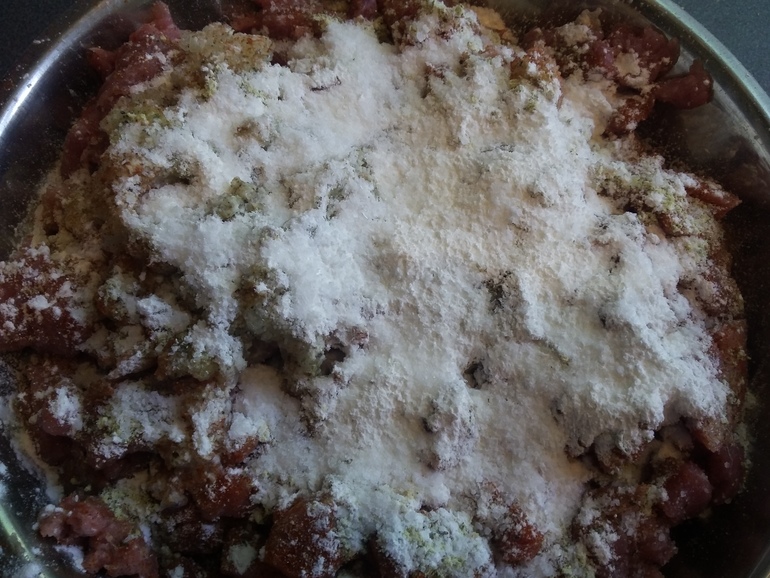 Специи: 1 ч.л. сахара, черный молотый перец, душистый перец молотый, паприка, мускатный орех, молотый кардамон, тархун: