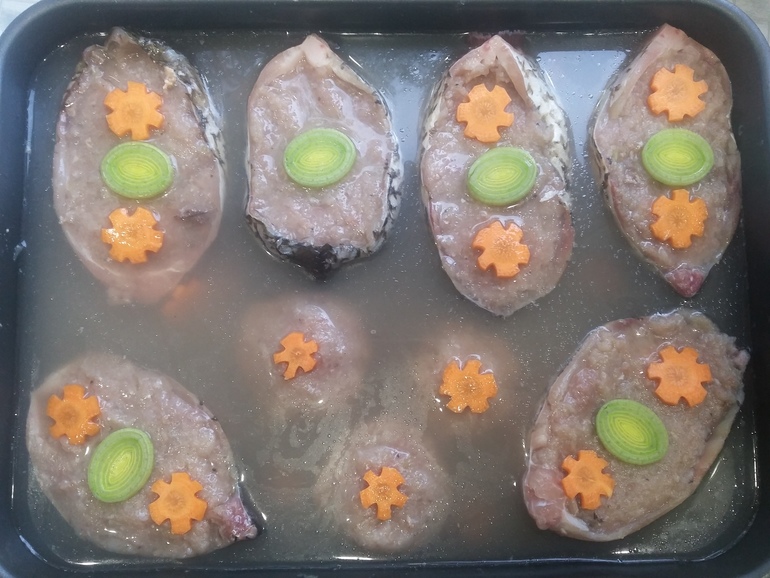 Попались мне на распродаже лещи - всего по 29 рублей за кг. Ну как можно пройти? Купила 3 штуки, каждый больше килограмма...Решила нафаршировать как учила баба Броня.