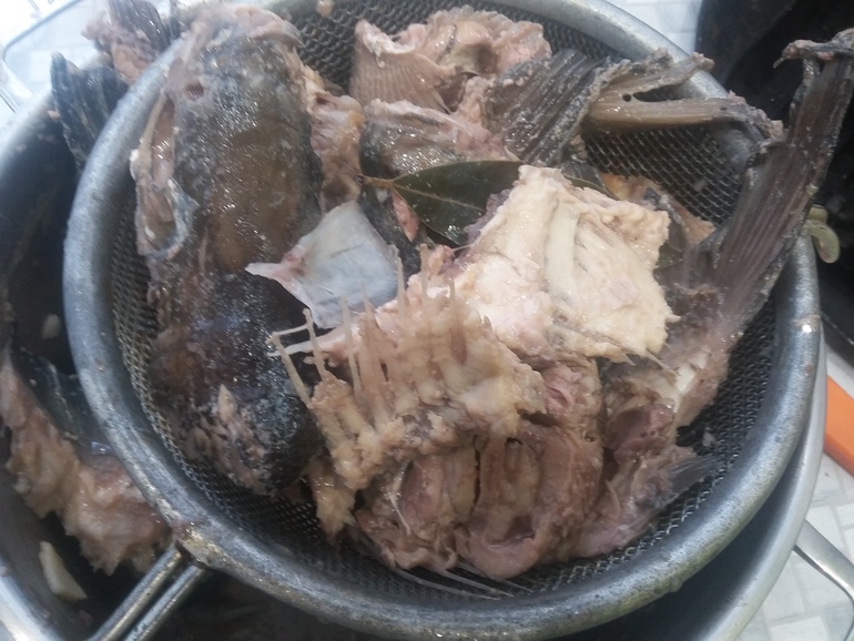 Отходы леща сложить в кастрюлю, залить холодной водой и поставить варить. Добавить соль, черный перец горошком, корень петрушки, лавровый лист. Варить до готовности, снимая пену. Процедить бульон: