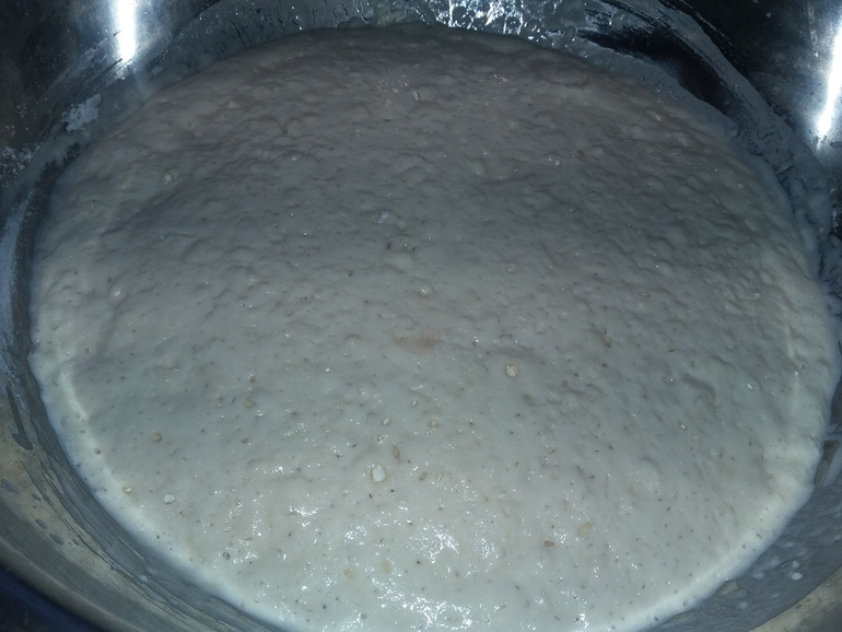 Перемешать, закрыть пленкой, поставить в теплое место до увеличения объема: