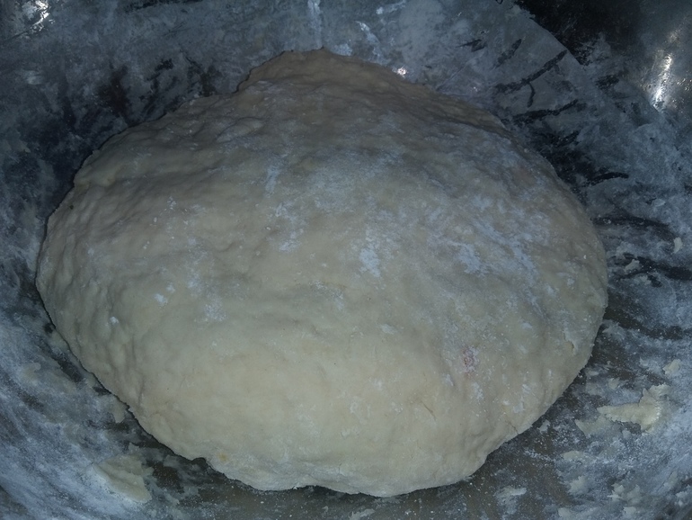 Затянуть миску пленкой, дать тесту подойти и обмять: