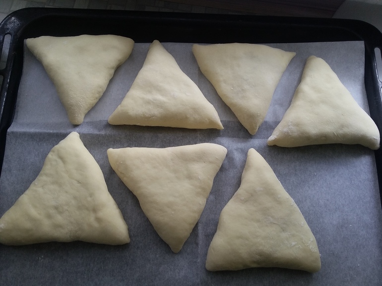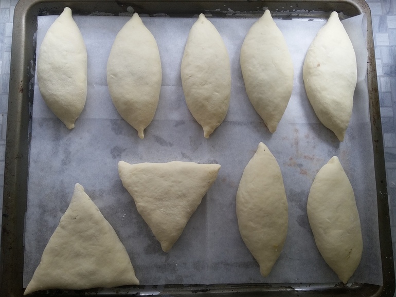 Защипываем, переворачиваем, перекладываем на противень овальные пирожки: