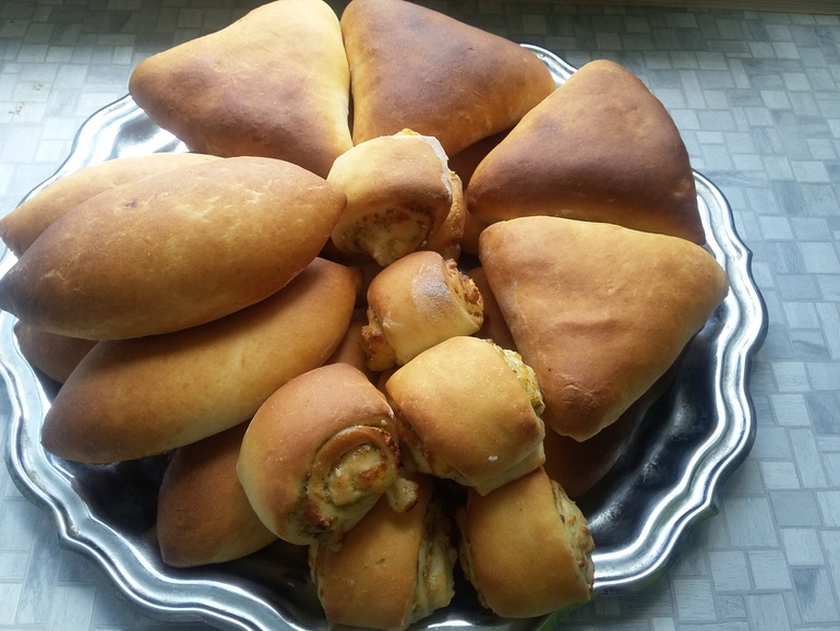 Внучке очень нравится тесто, поэтому пеку каждые выходные. А тут еще и новую духовку купила. Так что теперь пеки-запекись! В этот раз пирожки с пекинской капустой, с картошкой и с затаром.
