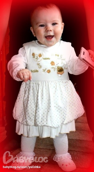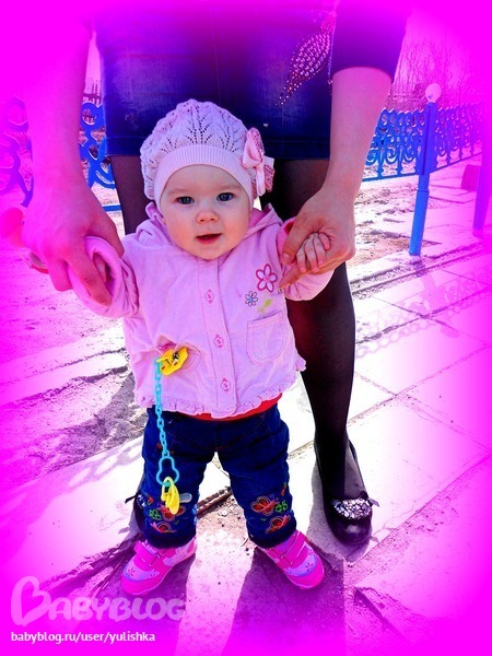 Мы уверенно стоим у опоры, (наконец то нам разрешили), ходим только за ручки. Не ползаем, но стали вставать на четвереньки пытаться ползти))) Имеем 2 зуба, пока больше не хотят лезть)). Очень хорошо кусаемся))) бедная Я.... Очень любим танцевать под любимую музыку ))) Весим 8400 (+300), рост 72 см. Опять меня бесит наша поликлиника мало того что там весы дореволюционные, точно не показывают вес, врач каждый раз новый, да еще оказывается когда мы в феврале сдавали кровь, у нас был понижен гемоглобин,и вот спустя 2 месяца я это узнаю, бля ну почему они сразу это нам не сообщили, или хотя бы когда мы в марте на приеме были, бесит прям, уже бы давно железо пропили, вот завтра снова пойдем сдавать кровь, бедненькая моя доченька, все из-за халатности врачей, даже незнаешь с кого спросить за это....