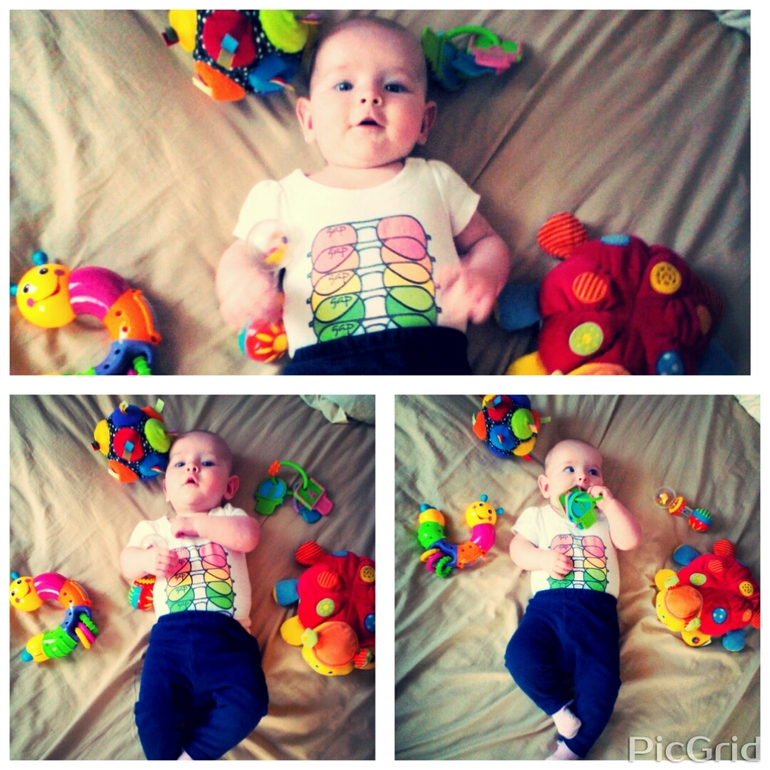 Доченька наша разговаривает во всю))агукает,мамает))пищит)а иногда такая злая что аж трусится и кричит,такая смешная)))очень любит свои игрушки,они такие яркие:)переворачивается не хочет.если на животике лежит то на бок перекачивается а со спинки не хочет(но я очень жду)делаем зарядку и скоро перевернемся))