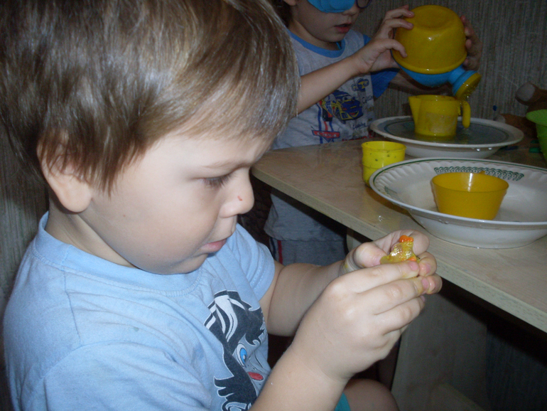 В пятницу мы готовили цветной лед, замораживали в нем игрушки,а потом их спасали из ледникового пространства))