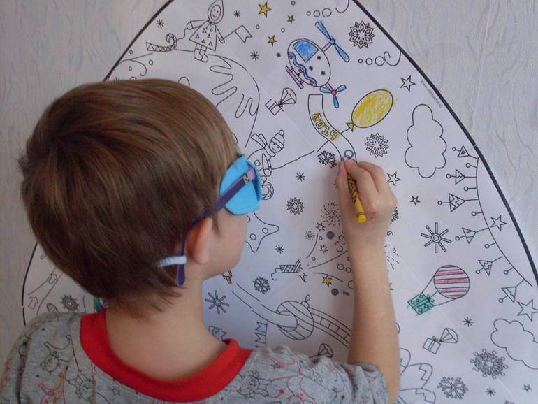 Следующие задание очень желанное Ваней. Он помнит, как два года назад Дед Мороз приносил ему огромную раскраску ёлочку, и очень хотело ребенку, чтобы такая раскраска появилась вновь. Дед Мороз все знает, все слышит, и в среду утром у нас появилась большая раскраска-ёлочный шар