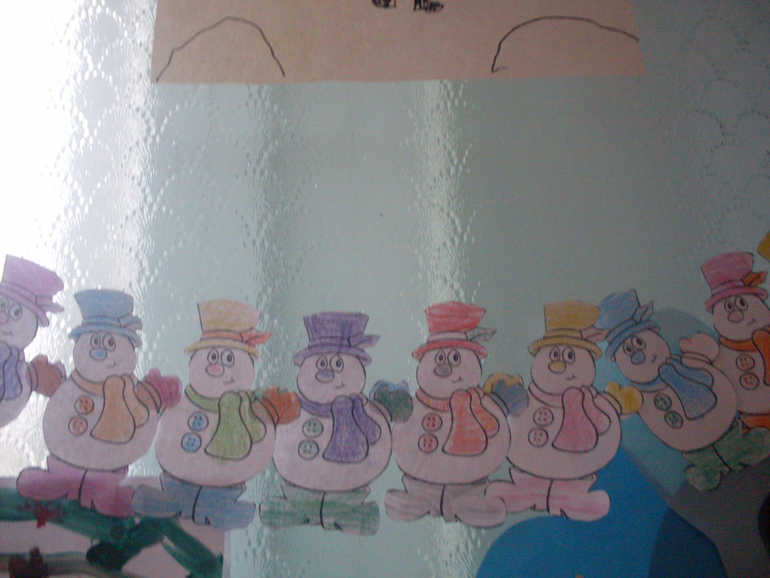 Сделали гирлянду из Снеговиков. Я их вырезала, а Ванечка - раскрасил