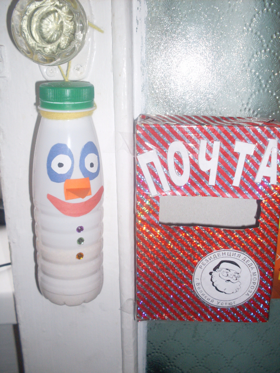 Снеговик из бутылки из-под йогурта