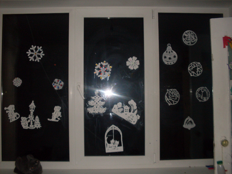 И мамины вытыканки. Впервые в жизни попробовала вырезать подобные картинки. Понравилось очень! На очереди еще лежат картинки) Окна еще в мыльных разводах