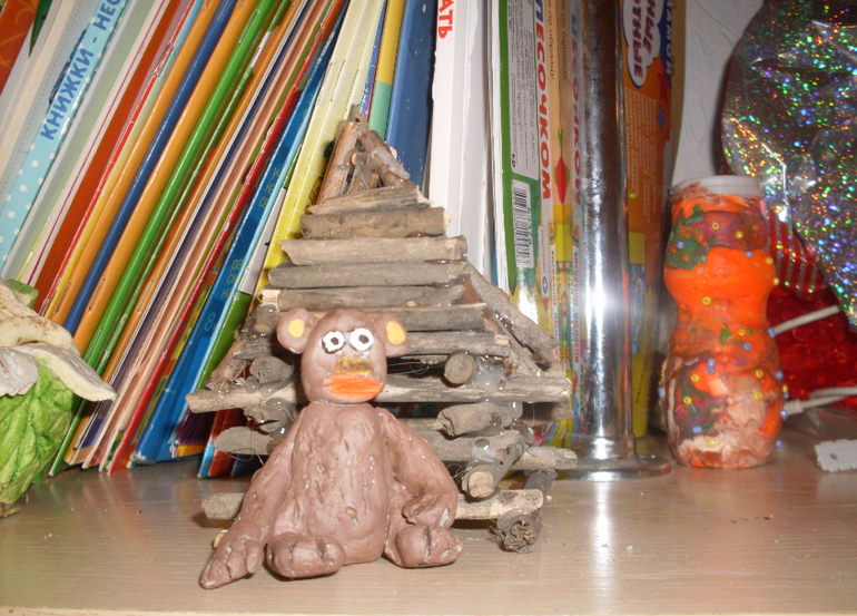 В четверг мы лепили обезьянку из глины. Ох, нелегкая это работа для детских пальчиков! Глина тяжело катается, рвется, ее надо постоянно смачивать водой, но совсем немного! Общими усилиями мы справились!))