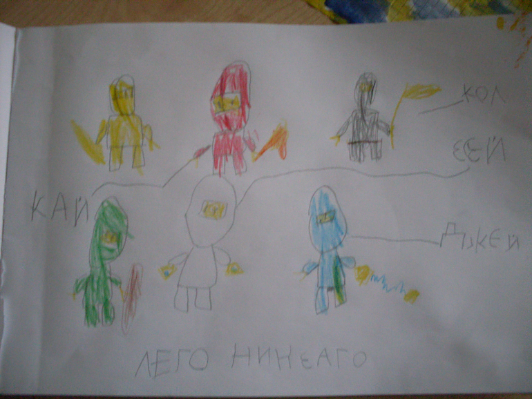 Целая команда собралась! Это из серии Лего Ниндзяго. У каждого своё имя. Я их до сих пор не могу запомнить Ваня с Артёмкой часто играют в ролевые игры "ниндзя", у каждого своя роль, свое оружие и своё имя))