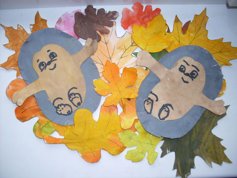 Мальчишки раскрасили листочки и "детали" ёжиков. Одному ёжику иголки делала я, второй ёжик полностью Ванин, его ёж серьезен и строг)))))) . Ваня даже ёжиков спать уложил. Сплошная милота