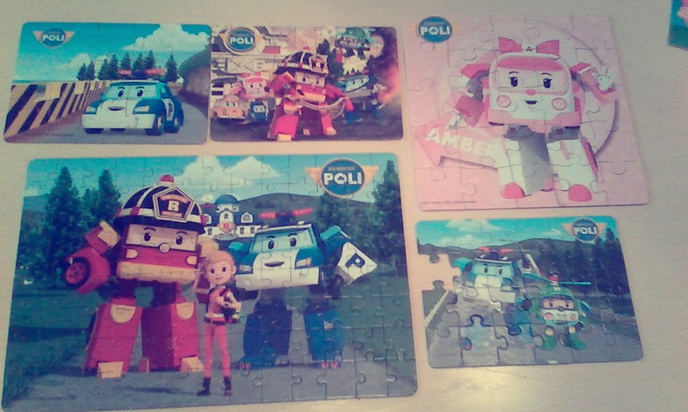 Очень мне нравилось в детстве собирать пазлы. У меня много коробочек было. Но Ваня никогда любовью к пазлам не пылал. А этим летом интерес к пазлам проснулся. Покупали разные, но больше всего Ване нравятся Поли Робокар
