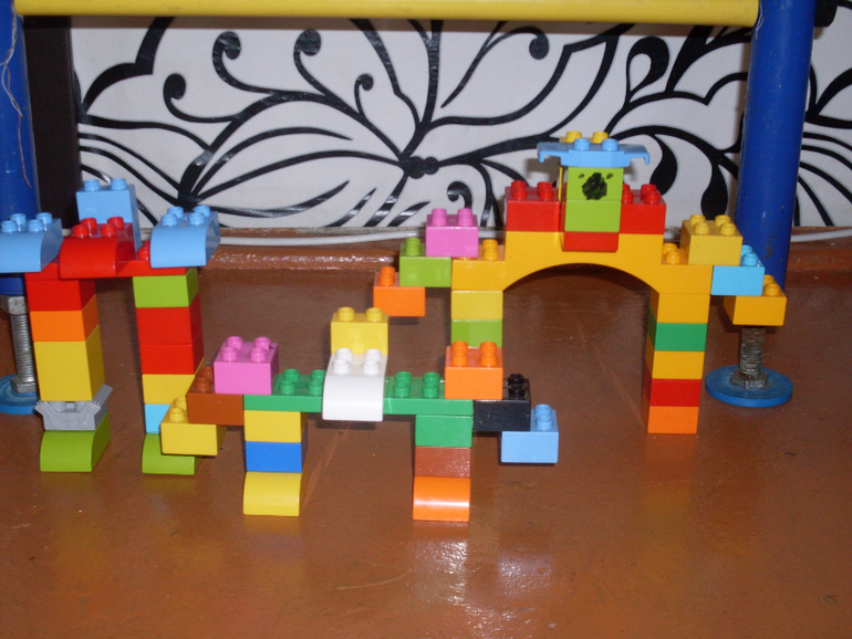 Строят вместе, потом Ванька просит сфотографировать. Я уже не разбираюсь даже, где чей робот, настолько все детали у Тёмы продуманы. Что говорить, тянется он за Ваней