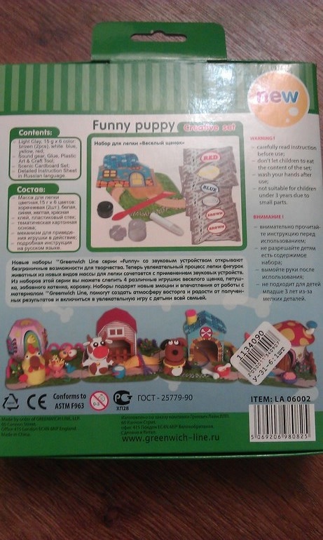 My-shop,Лабиринт,Озон,ReadВ наличии появились замечательные наборы легкого пластилина со звуковым устройством за 63 рубля и . Я заказывала такой набор Собачка. Меня приятно удивил размер коробки ширина 19 см, высота 22, глубина 5 см, я думала,что коробка меньше. Ниже я опубликовала фото моего набора. Дата производства указана 05,2012, срок годности 3 года, т.е набор годен до 05,2015. На подарки замечательный вариант. Учтите,что наборы разбирают очень быстро.
