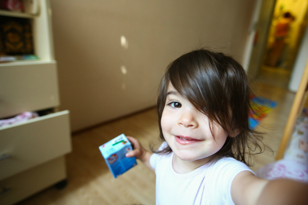супер,такая смешулина.Какие у вас волосяки,класссс.Я как нихотела чёлку подстригать,но пришлось,побоялась что на зрение повлияет,от того что они глаза закрывают,просто у нас и так под подозрением глазки.