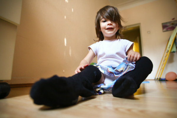 Ну это по моему -класик жанра-натянуть папины носки,и придти всех рассмешить,что бы окончательно проснулись!