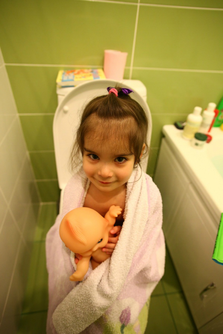 Потребности у насти тож иногда возникают после ванной)