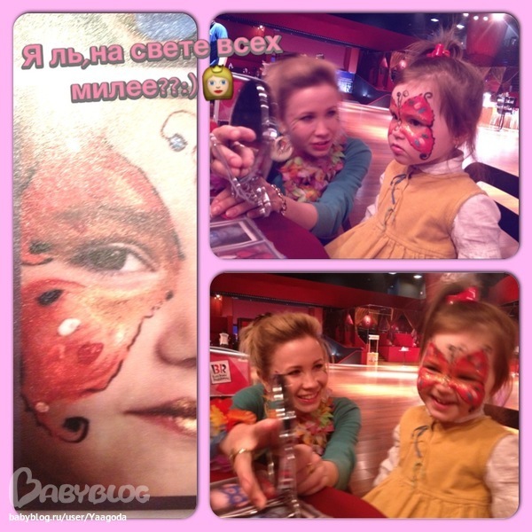 Сходили вчера...ну,как я и говорила маме...не высидит она(так и получилось..25 мин..и усе)),,маматька,пойдем домой!!вобщем мои лицезрели мюзикл,а мы с красоткой тусили в фойе)))но,как оказалось там много всего интересного))посидели с ней в кафешке,слопали пирожных с чайком))а потом Евуся увидела...вот см сами,что получилось))