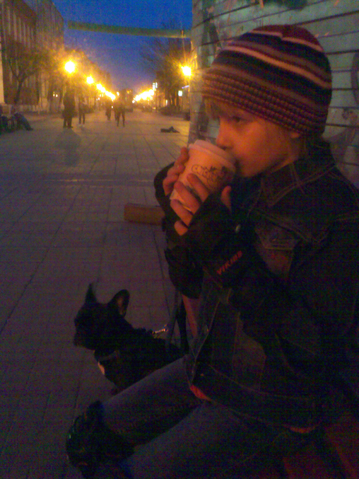 Наш тверской арбат... Ждем Нину из маркета, пьём какао, рядом юные мальчики с хорошими голосами поют песни моей молодости. Кино, Чиж, Сплин)) А небо именно такое...