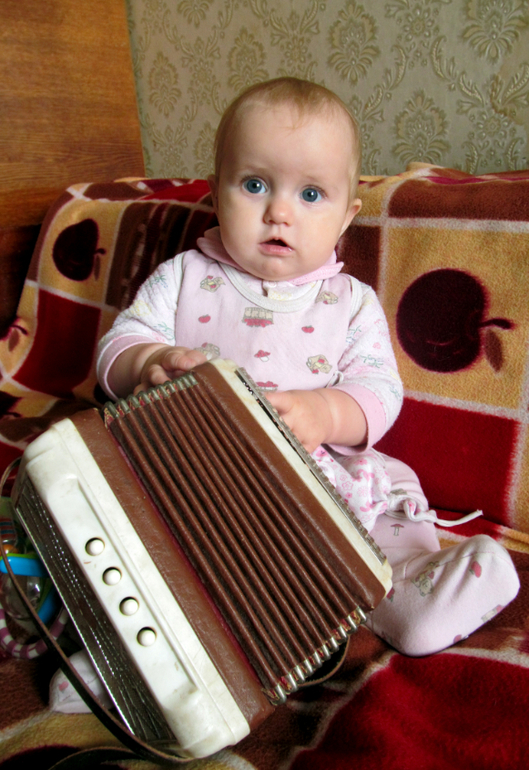 Что ещё написать? 2 зуба и страсть к кусанию и щипанию, по-прежнему визжит повелительно, но речевой диапазон ширится, даже кошку обозначили кошку как "ииита" ("с" ещё не поддалась нам), а вот "та-та-та" говорит много, вроде как это первые попытки представиться.