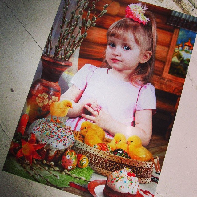 Долго-долго ждали заказанную в саду пасхальную фото-открытку… И вот. Тася настороженная, на себя не похожая. Но бабушки всё равно оценят)