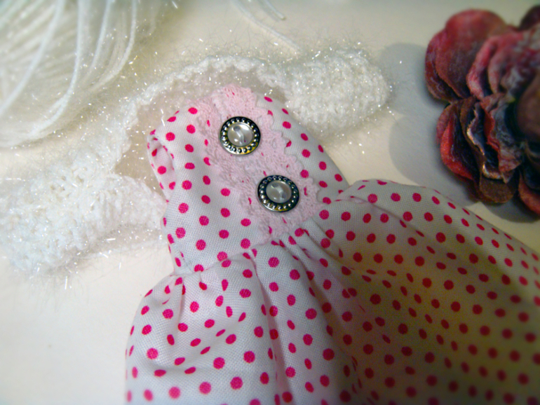 Вот такое платье для Урсулы вчера сшилось. Застежка на спине, сверху надевается белое болеро из нарядных блестящих ниточек. Ну и модница будет куколка)