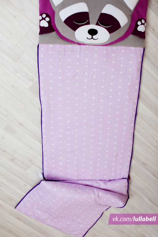 Спальник выполнен в форме стилизованной зверушки-игрушки, в которую ребенок забирается на время сна.