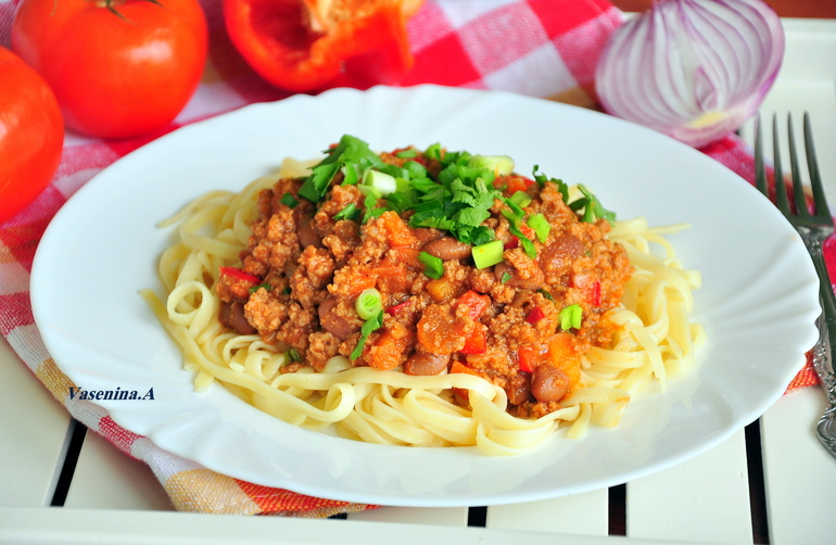 По истечению времени приготовления фарша, закладываем фасоль, аккуратно перемешиваем, добавляем соль и специи( обратите внимание, если в специях есть уже соль по умолчанию, будьте аккуратны, не пересолите блюдо)