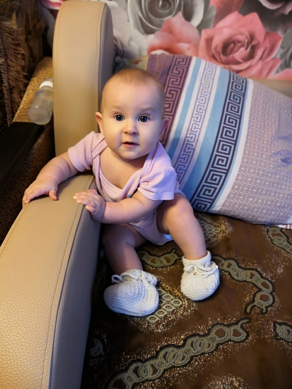 Моя любимая растёт с невероятной скоростью. Кажется недавно, этот маленький комочек мог только махать руками, а теперь она уже может недолго сидеть с опорой и совсем чуть чуть без неё. Вот только с ползанием совсем беда, крутимся на животе во все стороны а ползти даже не пытаемся. Да, я знаю что в идеале ребёнок должен сначала поползти а потом сесть, это идеальный вариант для подготовки спины, но у нас пошло все не по сценарию. Массаж только через 3 недели, надеюсь к нему мы хоть научимся вставать на четвереньки.