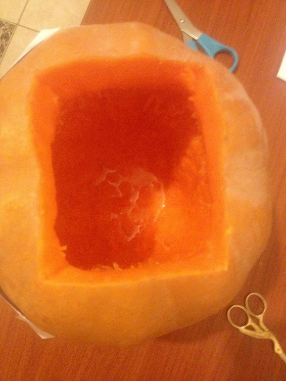 Готовая работа!) Тыква, стоит до сих пор! Давид категорически отказывается ее выбрасывать.... Думаю, может во двор вынести, и использовать в качестве временного кашпо!))) Если Давид разрешит)))