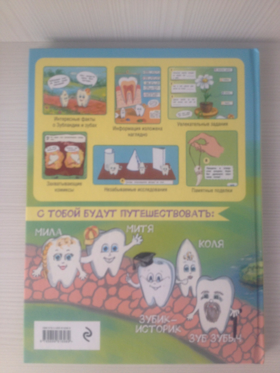 5. "Детям про зубки. Невероятное путешествие по Зубландии", текст Ольги Епифановой, иллюстрации и макет Марии Тимофеевой. Твердая обложка, 128 стр. Эта книга просто клад! Вот, честное слово! Она офигительная! Книга большая, формата А-4. Тескт и иллюстрации - потрясные. Это реально путешествие, по другому не назовешь! Этакая книга-трансформер, здесь рассказаны интересные факты о зубах, имеются задания, комиксы, исследования, поделки. О зубках здесь написано все-все-все и даже больше. Для любознательных деток (и родителей))). Чтение этой книги будет не только полезным, но и веселым. Что немаловажно. Давид заинтересовался ею сразу, как только увидел! Скоро мы отправимся в путешествие по Зубландии!) Я всем настоятельно СОВЕТУЮ приобрести эту замечательную книгу!