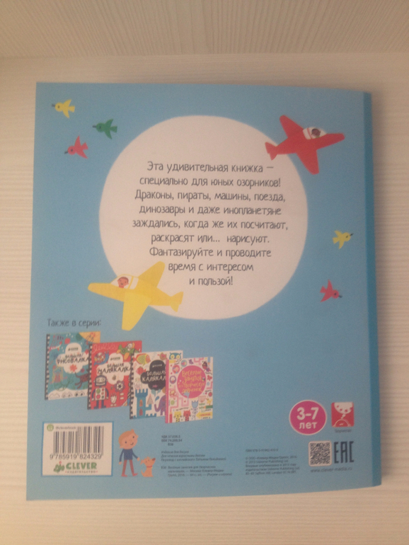6. "Веселые занятия для творческих мальчишек" изд. Clever, 3-7 лет. Эта творческая книга для любителей рисовать, фантазировать, выполнять веселые задания, играть в бродилки-находилки, клеить наклейки и пр.) В общем, для озорных мальчишек! Как наш сынок) Естественно, эту книгу Давид сразу же одобрил, даже не посмотрев какая она внутри, обычно он смотрит все, оценивает, потом дает ответ. Класснючая книжечка на 64 стр. Кое-что Давид уже выполнил, сказал, что нравится. Сразу же решили, что нужно добавить в избранное еще несколько книг из этой серии)))