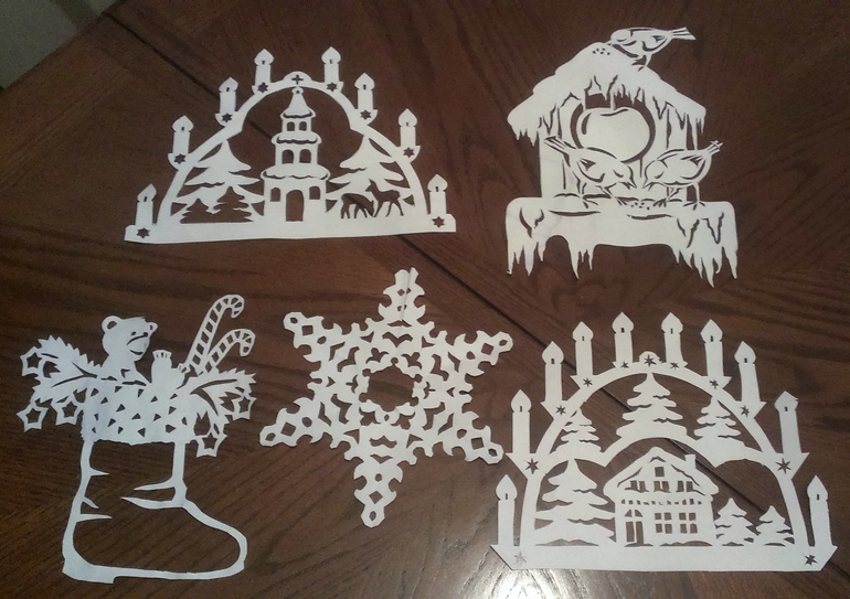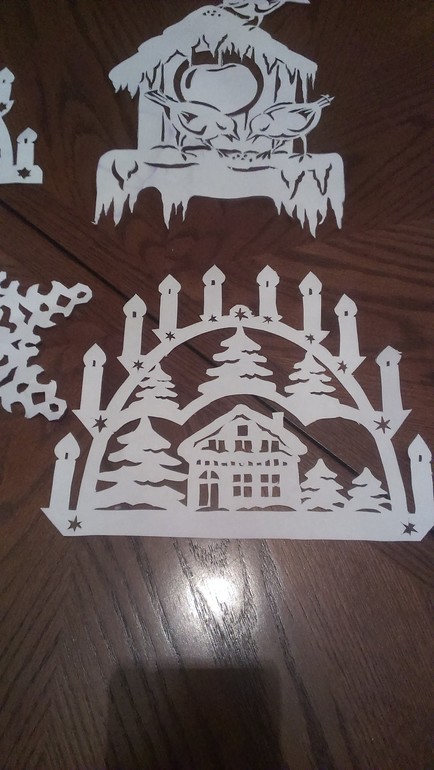 все-равно красотища! пойду тоже распечатаю, понемногу да вырежу. в прошлом году, кстати, ножницами тоже сначала вырезала, а потом надоело я канцелярским ножом внутренние все мелкие детали вырезала, намного быстрее и проще!)
