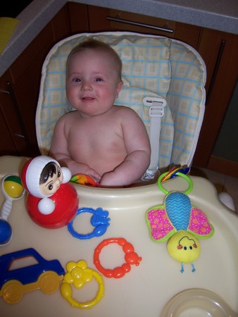 Юль, а Мишутка уже сидит? Я чё-то не пойму, в чём он сидит...детский стульчик?