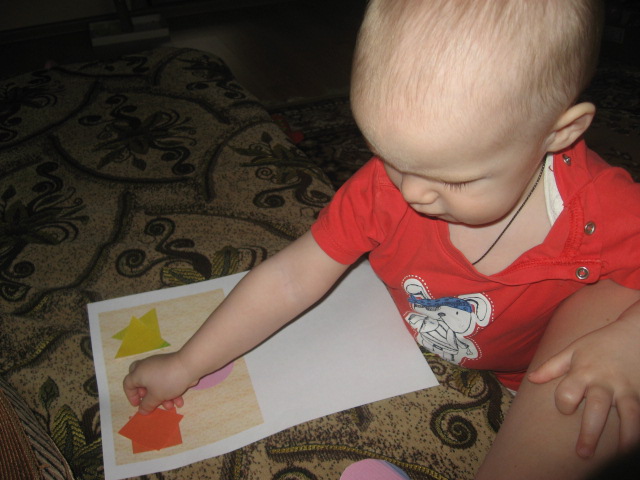 Такое задание делали первый раз. Не сразу Сашулька поняла, что я от нее хочу, но потом справилась. В конце Саша все фигуры сдула с листа.
