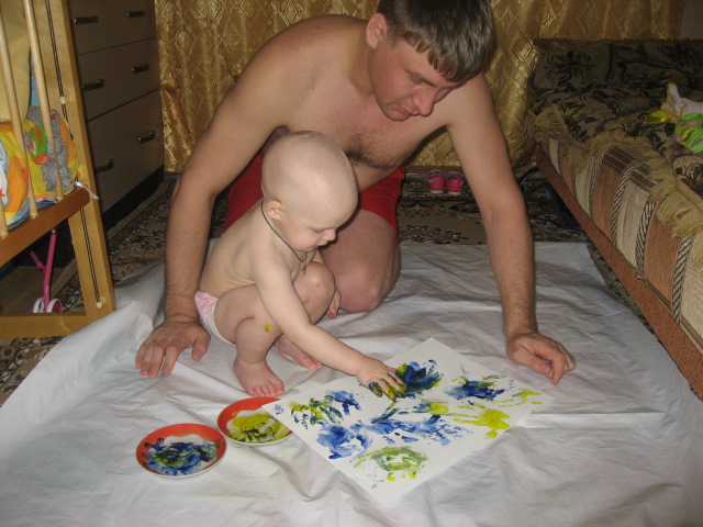 Правда не очень долго рисовали, Саша посмотрела на свои грязные ладошки и начала плакать. Побежали быстрее отмывать)))