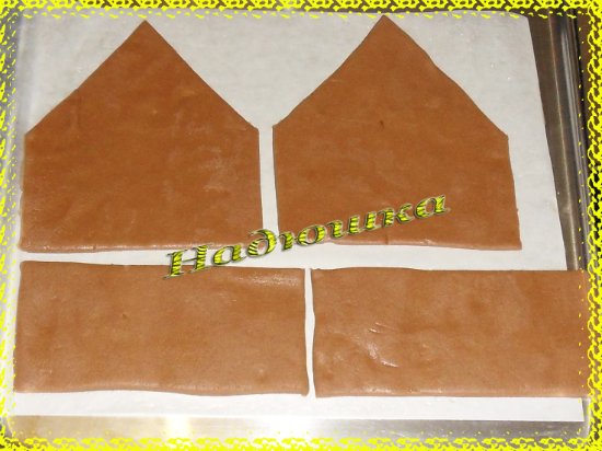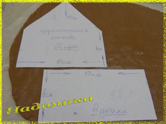 Из каждого такого шаблона нам нужно вырезать из теста по две детали - это будут две из четырех сторон нашего домика.