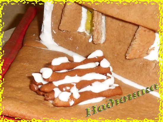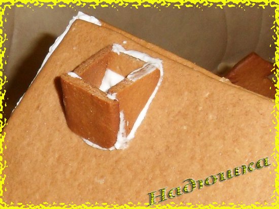 Теперь убираем опоры. Глазурь подсохла и можно крепить крышу и украшать окна.