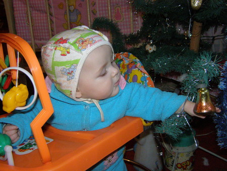 Геле очень понравилаась настоящая большая Елка она все время пыталась под нее залездть.. один раз чуть ее не свалила все нижние игрушки были ею сняты...