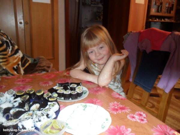 Молодчик! Я недавно тоже кушала роллы - самые простые, вроде не высыпало у Янусика, но вот живот поболел чуток. Поэтому больше пока не рискну...(( а я их так люблю, и Кристька любит ))