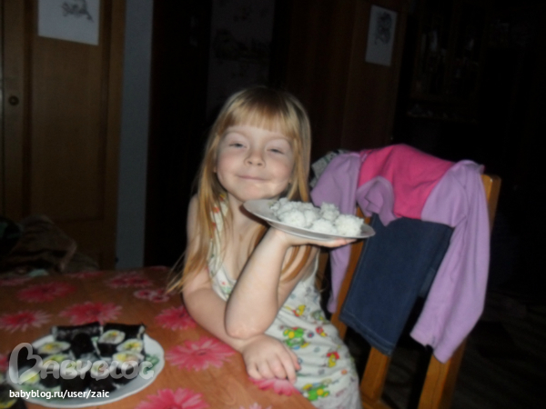 а для ангелины еще специально рис комочками она обожает этот рис есть просто макая его в соус..