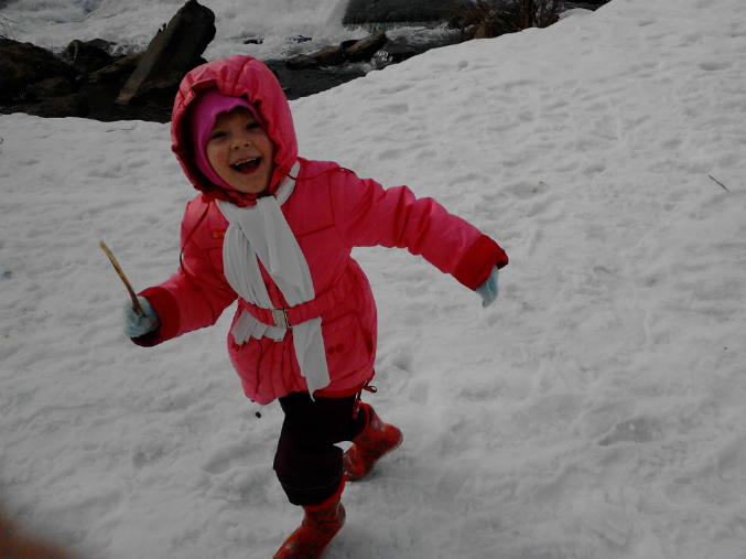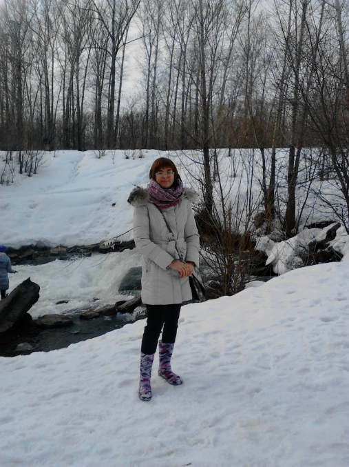 шарф сама себе подоткнула за пояс, говорит чтоб на снегу не намок.. хозяйственная дама.