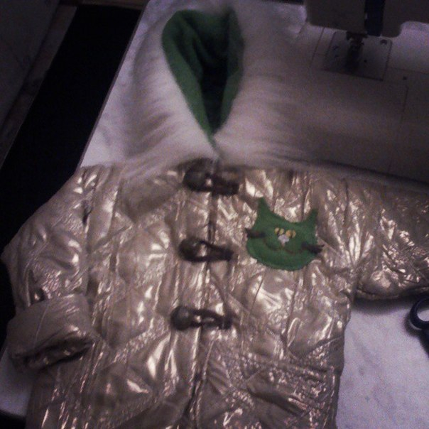 еще сшила ей к зеленым салатным брючкам на флисе, вот такую куртяху осенению типа ветровки на утеплителе тонком...