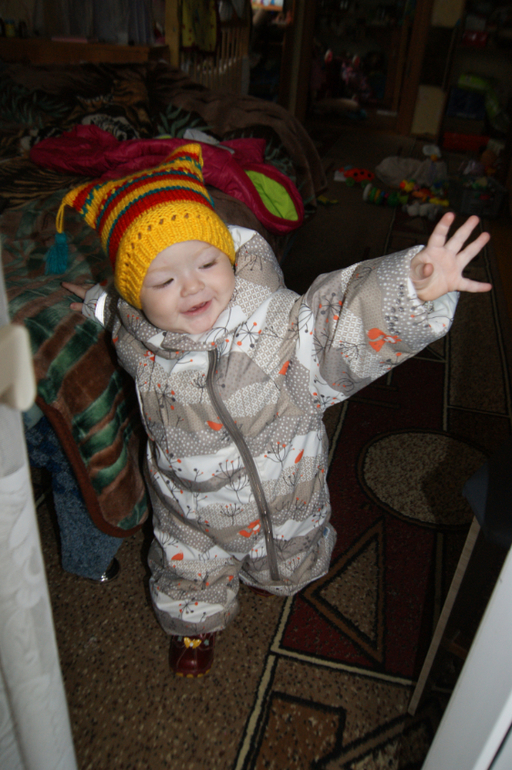 шапка для примера и сапожки осенние-зимние (на холодную осень, до -5-8*С максимум оч мерзнут ножки, хотя на натуральном меху, оч неудачная модель, хотя симпатичные)еще от гельки лежат покупали ей на первую зиму к весне тк ребенок требовал ходить.