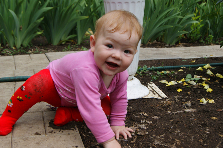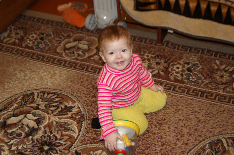 носимся в слинге постоянно, ника сама стоит придерживаясь слегка иногда отпускается и не держится но еще боится. ползает со скоростью света по квартире гоняет кота, обожает ложки для обуви, кошачью миску, и обувь, еще шкафчик ванной с порошками лазит постоянно отгоняю тока успеваю. зубов до сих пор нет. аппетит у никуси отменный жует все подряд, часто стала есть нашу еду из тарелки у меня схомячит тока так ест жует , не давится кусками. съедает хлебную корку, пьет наконец то из поилки , а то соображалки не хватало до этого. ненавидит бутылку и соску. грудь ест капельку меньше. обожает Ангелину играет с ней, поет песни ааааа когда укладваемся спать, пытаясь подпевать.
