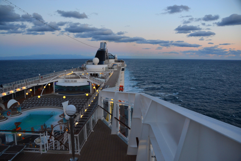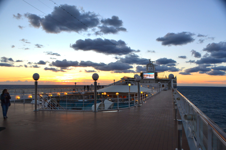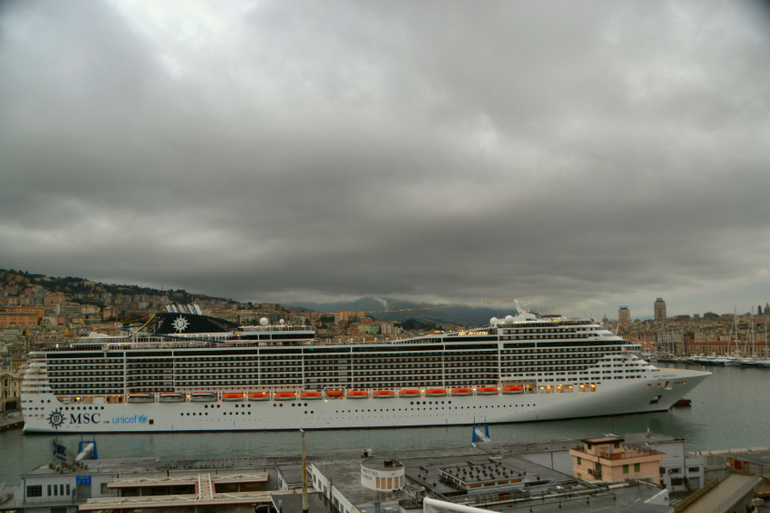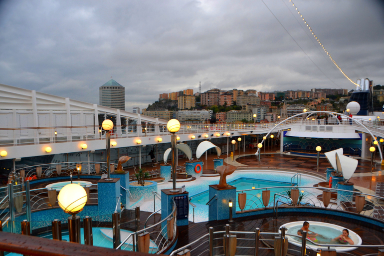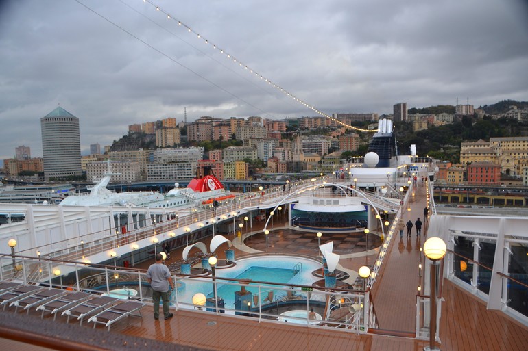 В каюте мы нашли спасательные жилеты и отправились на инструктаж по безопасности. А на ужине наблюдали удаляющиеся от нас порт и берега Италии. Впереди нас ждала Генуя.